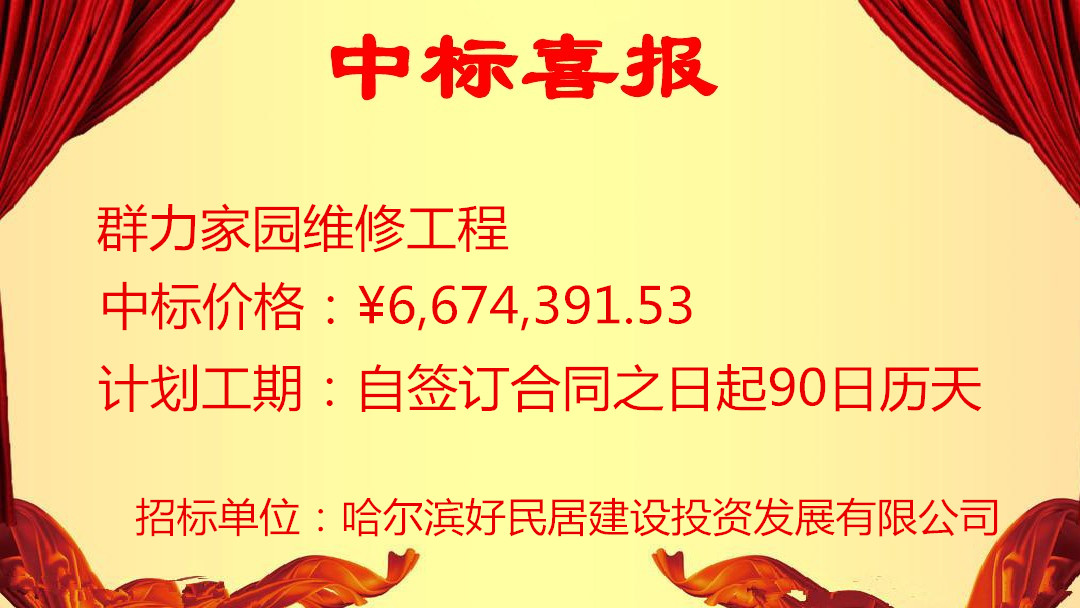 經(jīng)過(guò)企業(yè)領(lǐng)導(dǎo)的正確決策和各崗位管理人員的不懈努力,華鼎集團(tuán)再次中標(biāo),群力家園維修工程。